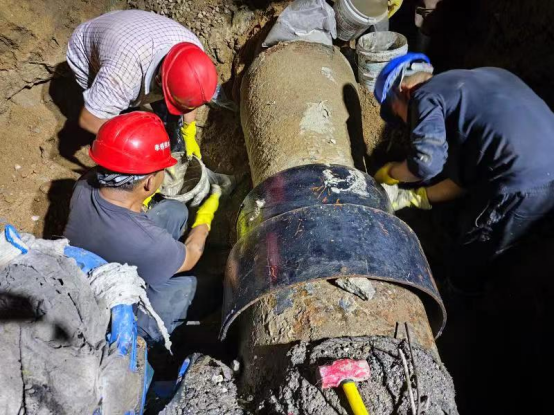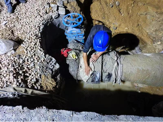 晚上22點30分,管網漏水點被成功修復,保障沿線居民不間斷生活用水。