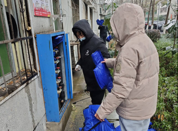 2023年10月以來,公司就著手對城區(qū)需要保溫的水表、露天供水管道及供水設(shè)施進(jìn)行摸底,制定了全面的防凍保溫方案。近日,孝感迎來多場凍雨天氣,為了確保供水設(shè)施的安全使用,公司共抽調(diào)相關(guān)部室共50余名工作人員協(xié)助開展防凍保供工作,相關(guān)人員在客服部的統(tǒng)一調(diào)度下分城南城北兩個片區(qū)再次深入各小區(qū),對重點區(qū)域立式水表箱、平臺水表箱、高層小區(qū)水表、地下水表箱、消防栓等供水設(shè)備通過保溫海綿包扎、打泡沫膠和膠帶封箱門等方式做好防凍保溫工作,爭取不漏一處,不落一戶,全力以赴打贏這場供水防寒防凍保衛(wèi)戰(zhàn)。