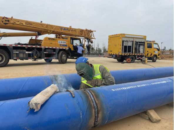 此次管線遷改共需對(duì)2條道路(復(fù)興大道、縱九路)4個(gè)路口共計(jì)1600余米的供水管線進(jìn)行遷改,該工程工期短、地下管線情況復(fù)雜,施工難度教高。為高效配合完成京港澳高速公路改擴(kuò)建工程,全力保障復(fù)興大道、縱九路及周邊企業(yè)、用戶(hù)正常用水,公司克服一切困難,對(duì)高速擴(kuò)建施工實(shí)施24小時(shí)全天候配合保障,并提前一個(gè)月組織專(zhuān)業(yè)技術(shù)人員多次進(jìn)行現(xiàn)場(chǎng)踏勘,細(xì)化管線施工連接點(diǎn)位置、停水時(shí)間、焊接點(diǎn)位和方式,制定周密管線遷改接水方案,為新舊管道連接敷設(shè)做好了充足準(zhǔn)備。
