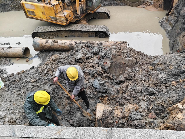 3 月 3 日下午三點二十五分,公司接到市民反映,孝武大道久尊酒店門口出現管網漏水情況。經調查,此次管網漏水,是由于道路施工開挖作業中存在違規操作。施工方致使供水管網暴露在外,卻未進行任何加固處理。作業坑道在大雨的持續沖刷下發生了滑坡現象。最終,在滑坡產生的強大外力作用下,該地段兩根DN400水泥管脫頭,進而引發了管網漏水問題。