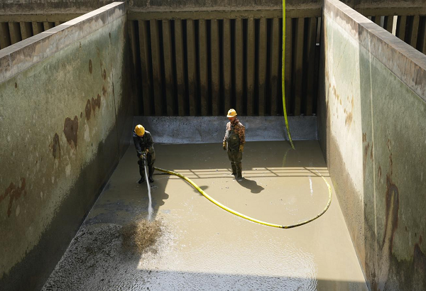 平流池作為水處理核心設(shè)施,長期截留原水中的泥沙、藻類及重金屬顆粒。若未定期清理沉積物可能滋生微生物,甚至釋放二次污染物,池底淤積也會(huì)改變?cè)O(shè)計(jì)水流形態(tài),影響絮凝體沉降效率。此次清洗工作可恢復(fù)池體過水?dāng)嗝妫粌H能有效預(yù)防二次污染、減輕濾池負(fù)荷,還可降低水處理藥劑成本,助力水處理工藝穩(wěn)定運(yùn)行,保障優(yōu)質(zhì)的出廠水水質(zhì)。