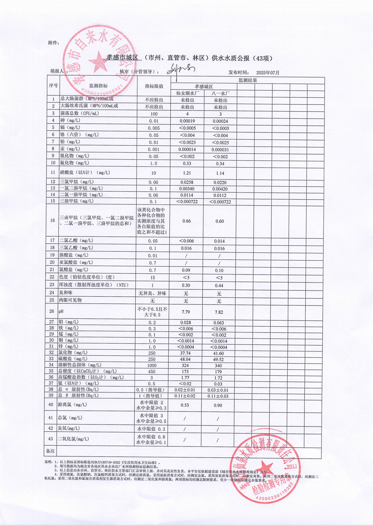 2025年7月水質報告