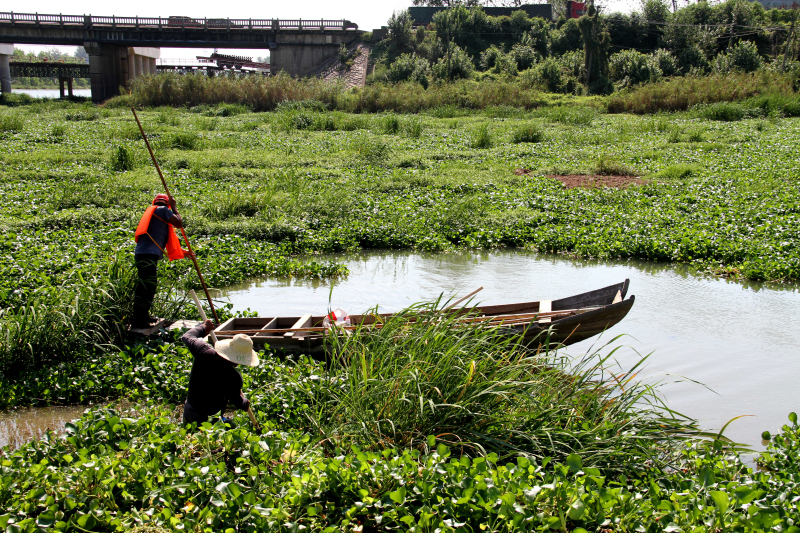 受下游橋梁施工截流及近期持續(xù)晴熱天氣影響,我市城區(qū)備用水源地淪河保護區(qū)內(nèi)水葫蘆大面積爆發(fā),將整個水面“霸占”得嚴嚴實實,影響原水水質(zhì)安全。為清除隱患保障淪河應急取水功能,在我公司高度關(guān)注和積極聯(lián)系下,淪河河長辦、孝南區(qū)朱湖辦事處等部門迅速組織清剿隊,自8月21日起與水葫蘆展開“會戰(zhàn)”。