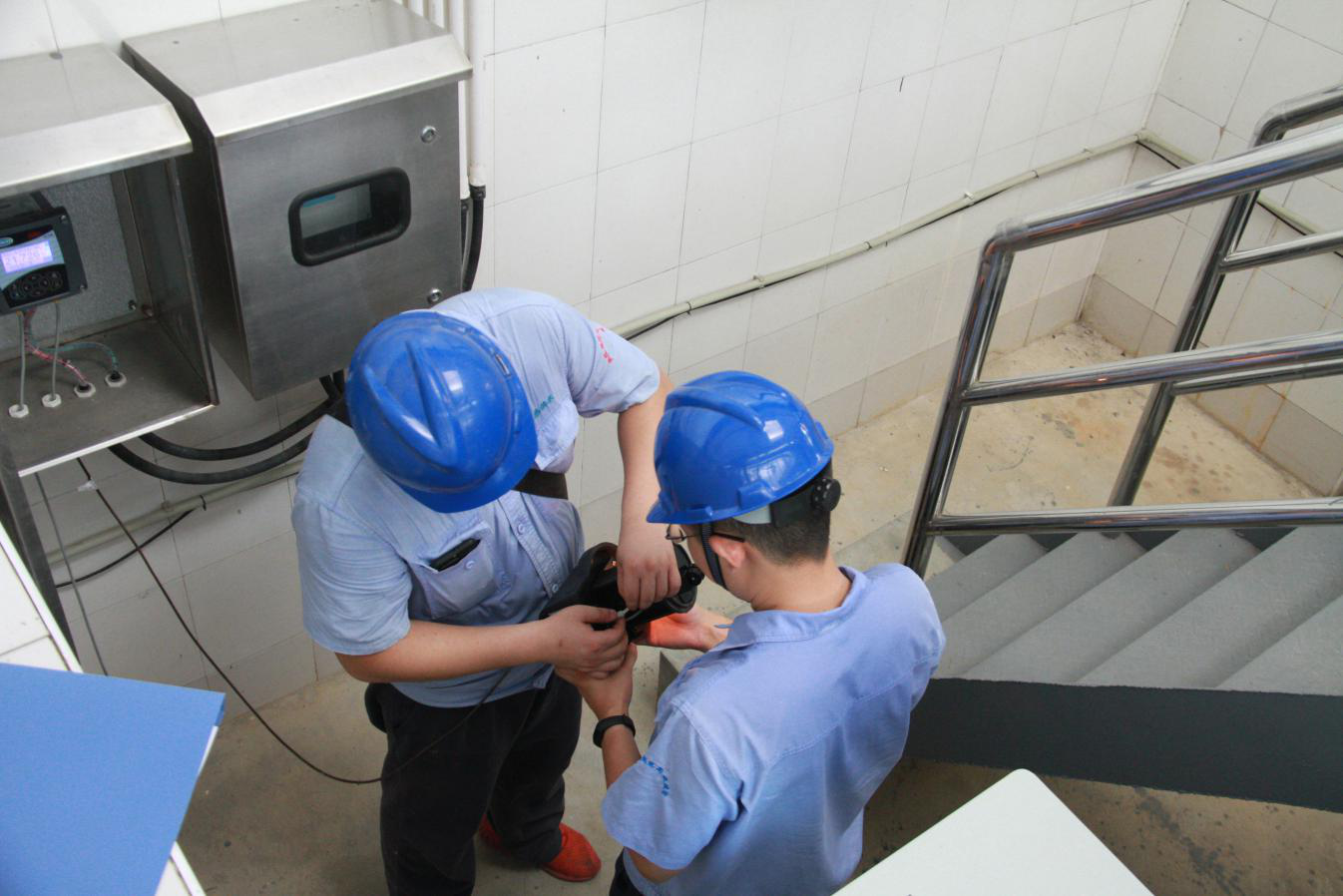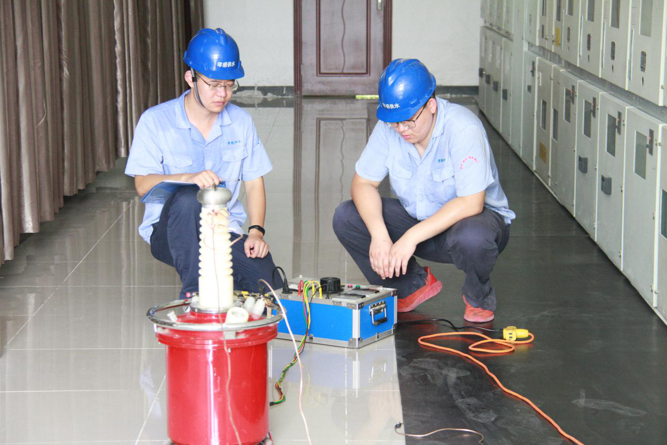8月15日上午10點,三名維修中心工作人員在三水廠配電間對施工用的絕緣工具進行高壓試驗。維修人員告訴我們,這個作用是為了檢測絕緣工具效能是否完好,能否正常工作,如果絕緣出現(xiàn)問題的話,會帶來很大的安全隱患。