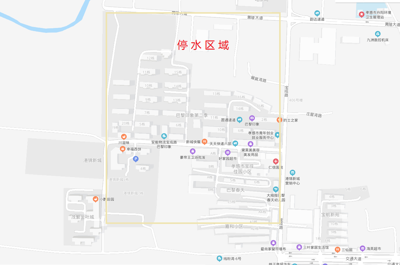 因寶成路巴黎印象供水管網碰頭,我公司將于2020年9月18日(周五)晚21:00至次日早晨8:00進行施工作業(如遇雨天,施工順延),屆時仁信醫院、巴黎印象,巴黎春天、港錦新城、寶成佳園等小區及周邊區域將暫停供水。請上述區域的客戶相互轉告,提前儲水備用,并及時檢查和關閉內部用水設施。