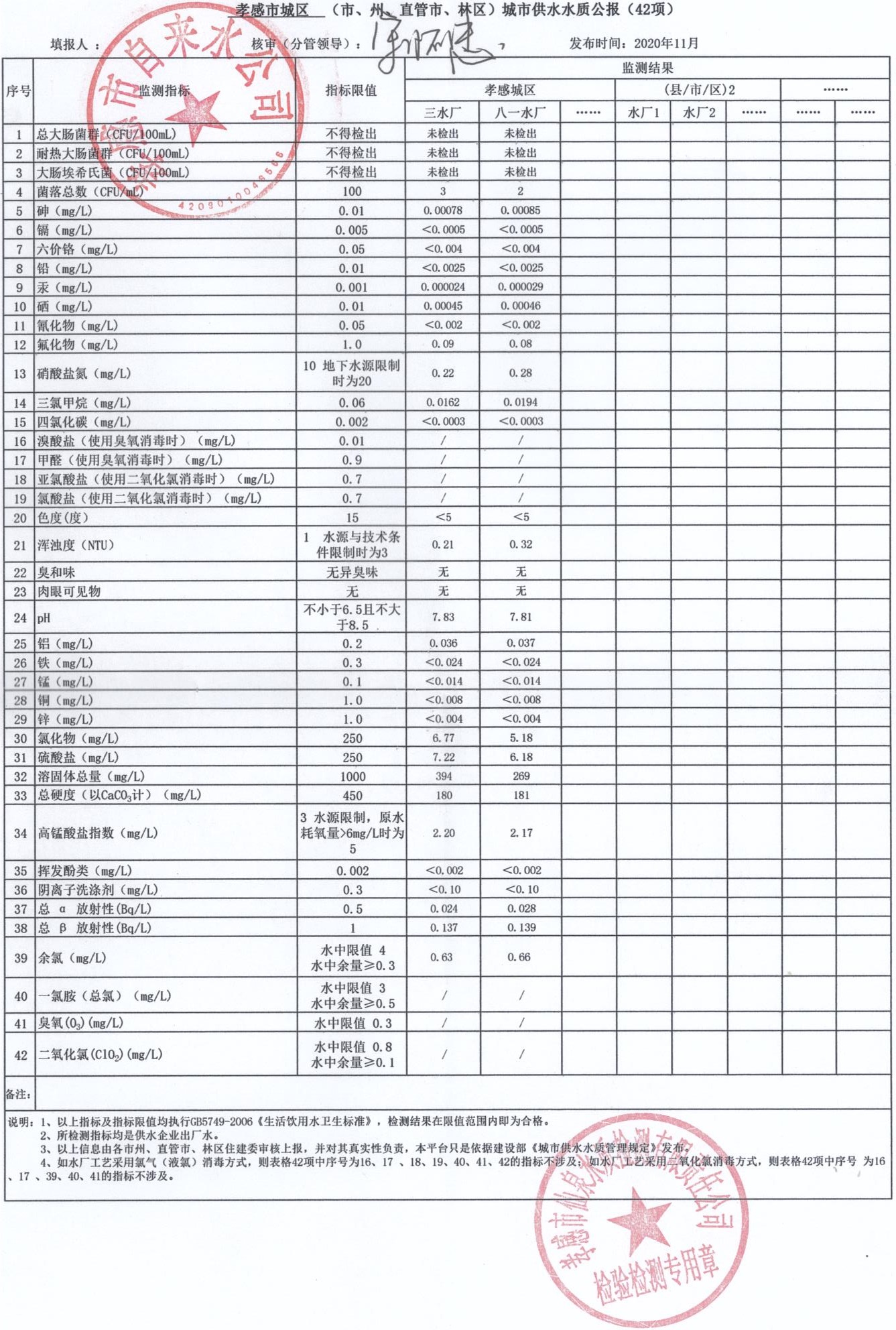 2020年11月水質(zhì)報告